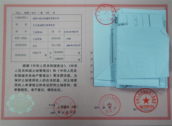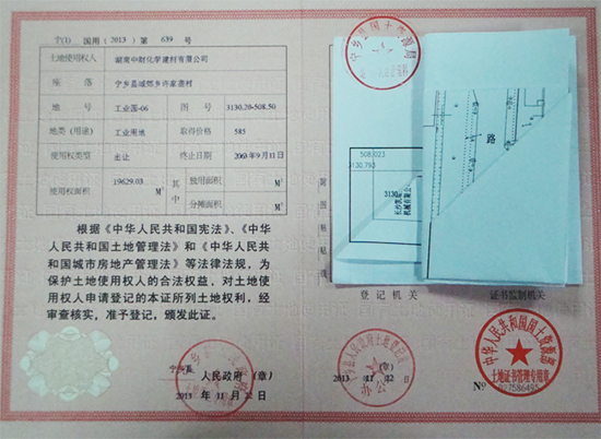 湖南乐鱼网页版登录入口经过多方努力沟通与协调,于2013年11月22日取得43184.75㎡与19629.03㎡(合计折合94亩)两宗地的国有土地使用证。
