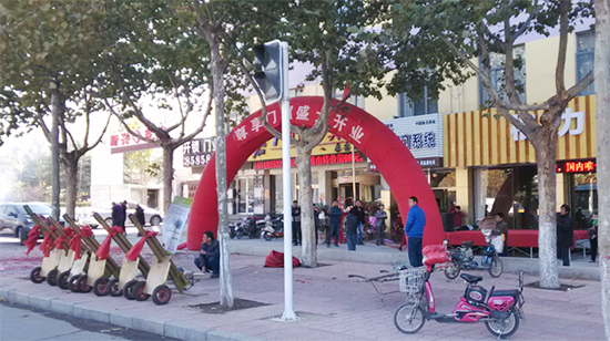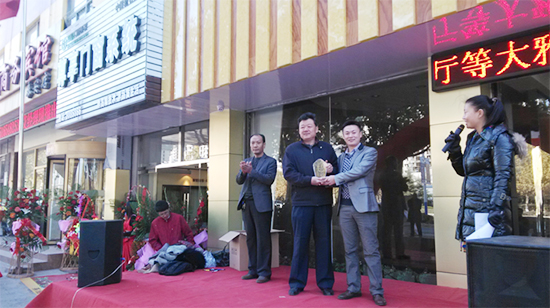 开业当天,门店安排了歌星现场演唱、舞蹈等多个节目,主持人穿插进行了企业介绍、产品介绍、门店开业活动介绍以及有奖互动,引得来往行人不断驻足。开业现场举行了授权、剪彩仪式,由鲁东市场管理处张总为专卖店颁发授权牌。