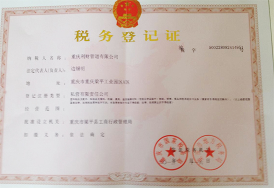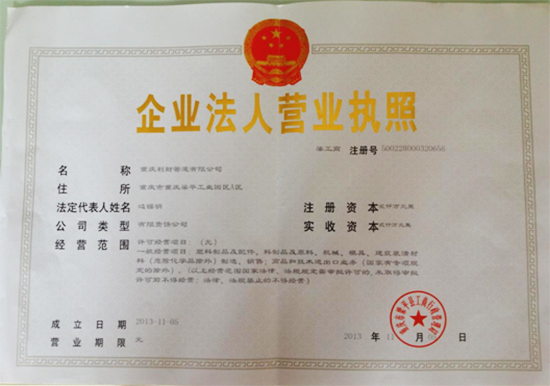 在集团各位领导及相关部门人员的悉心关怀与大力支持下,经过四个月的前期筹备,重庆利财管道有限公司已于2013年11月6日正式完成了工商注册手续。