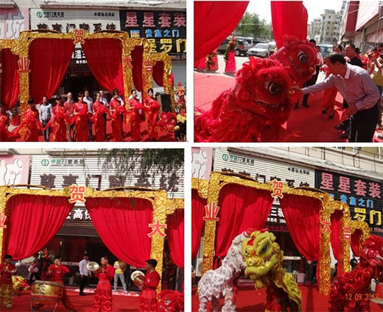 开业当天,门店安排了威风锣鼓、歌星现场演唱、喜闻乐见的东北二人转、南狮表演等多个节目,主持人穿插的产品知识有奖互动,引得来往行人不断驻足。而后,醒狮点睛、剪彩仪式,又将现场气氛推向高潮。开业现场还举行了授权仪式,由乐鱼网页版登录入口集团辽北市场管理处金总为专卖店颁发授权牌。