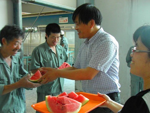 为保障员工的身体健康和安全生产,公司准备了西瓜、矿泉水、冷饮以及解暑药品等防暑降温物品,并开展了公司领导班子到生产一线慰问活动,向辛勤工作的员工发放清凉饮品,叮嘱每一位员工在高温作业下注意防暑降温、加强自身安全生产意识。