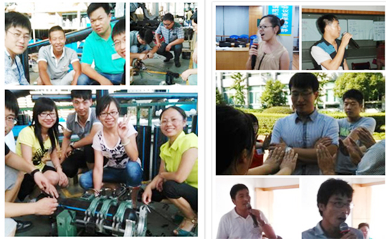 7月18日,新昌技术服务部弥海涛经理为大家介绍了公司的CTS、RCS、HRS等系统产品,随后新昌技术服务部吴高强、焦赛柯、刘孟佳等多位讲师带领学员学习PVC、地源热泵、PE-RT等产品知识。