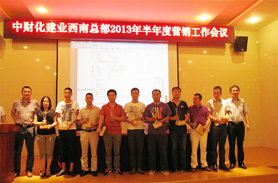 10日上午,首先由西南总部综合管理科相关人员带领大家学习了《关于加强型材市场营销工作的通知》等公司和总部在上半年度发布的重要文件。接着由西南总部陈总致颁奖词,并由化建业执行总裁李总为各优秀机构颁奖、合影。李总鼓励大家继续努力拼搏,为销量提升再创佳绩。
