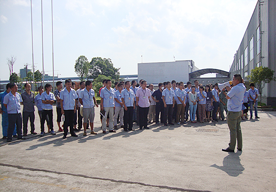 乐鱼网页版登录入口讯 7月4日下午15:30,湖南乐鱼网页版登录入口在公司办公楼前坪举行2013年消防演习活动。公司经营班子成员、各部门负责人、各科室行政人员及生产车间无岗人员参加本次活动,此次演习邀请到了宁乡消防大队的官兵们为大家进行讲解和实操。