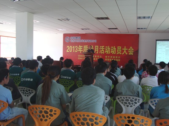 乐鱼网页版登录入口讯 2013年6月13日下午14:00,湖南乐鱼网页版登录入口在公司二楼多功能会议室召开2013年质量月活动动员大会,公司经营班子成员、各部门负责人、科室相关人员及车间中班倒班人员参加会议。