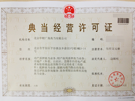 乐鱼网页版登录入口讯 乐鱼网页版登录入口金融广角(北京)于近日成功获得北京市商务委员会颁发的“北京乐鱼网页版登录入口广角典当有限公司”《典当经营许可证》。