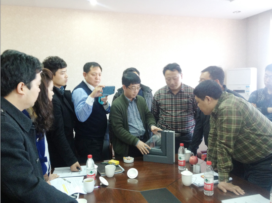 针对技术学习议题,特意邀请了齐齐哈尔市友联窗厂老板高树方先生,带着实物样窗为大家讲解金属型材与塑料型材的优劣对比,并贴近实战,指出问题症结所在。通过学习,大家获益匪浅,原来很模糊的东西现在豁然开朗。如铝材的问题在于玻璃,知其然,也知其所以然。大家坚定了随后工作的信心。