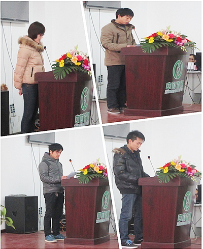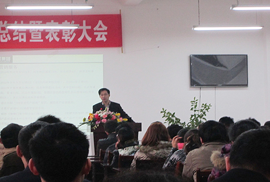 上午9点,总结暨表彰大会在公司多媒体会议室准时举行,全体员工参加,西南总部首席执行官陈亮先生作为特邀嘉宾出席,会议由综合部经理甘华乔主持。此部分会议由总结计划、颁奖仪式、代表发言、新年致辞四部分组成。会议首先由谷总作公司年度总结及计划工作报告,紧接着寇总主持了先进员工颁奖仪式,随后4名先进员工代表上台与大家分享了工作中的成功经验,最后寇总代表公司对全体员工作了热情洋溢的新年致辞,上午的会议结束。