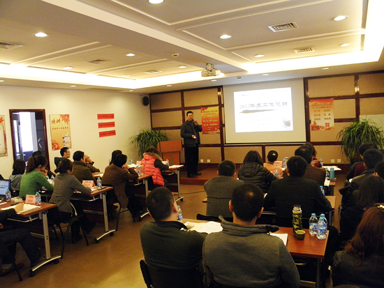 在全体人员一起观看了关于狼的团队精神的视频短片后,广角首席执行官杨总带头对自己工作中的不足进行了深刻的反省,对广角2012年度工作从取得的进步与存在的不足等方面进行了简要的总结与客观的分析,并对广角2013年的工作分别从五个层面做了详细的部署,要求大家做到“谋思路、同心路、练套路、压风险”。