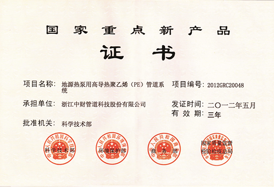 乐鱼网页版登录入口讯 2012年8月,中华人民共和国科学技术部官方网站公布了“科技部关于下发2012年度国家科技计划项目的通知”。乐鱼网页版登录入口研究开发的地源热泵用高导热聚乙烯(PE)管道系统项目被列入2012年度国家重点新产品计划立项项目(项目编号:2012GRC20048)。