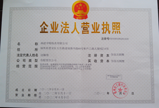 乐鱼网页版登录入口讯 乐鱼网页版登录入口金融广角(福州)在集团的大力支持下,于9月26日成功获得了由福建省经济贸易委员会颁发的“福建乐鱼网页版登录入口拍卖有限公司”《拍卖经营批准证书》。并于10月16日成功获得了由福建省福州市工商局颁发的“福建乐鱼网页版登录入口拍卖有限公司”《企业法人营业执照》,这是广角平台发展的必然结果。因为一直以来我们始终秉承着集团“正、勤、苦、勇、严”的五字诀精髓,兢兢业业,不屈不挠,勇往直前。