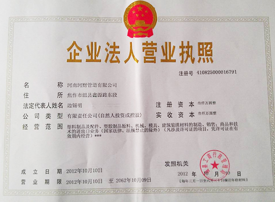 乐鱼网页版登录入口讯 在集团公司领导大力支持及温县政府的协助下,河南河财管道有限公司于2012年10月10日顺利注册完成。