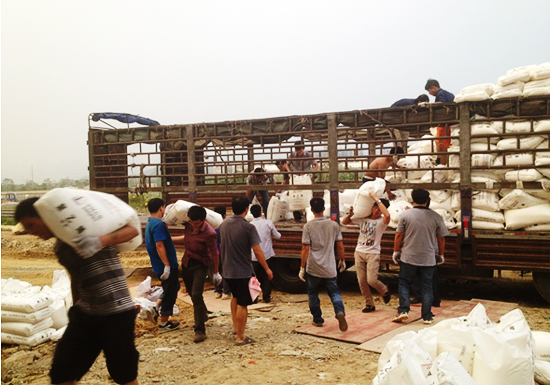 初秋温热的阳光,点燃了乐鱼网页版登录入口人的劳动热情,在总工杜文信的带头指挥下,各部门员工、广西市场营销人员开始有条不紊的按指定场地卸货。粉尘、汗水已交融在一起,口号声、扛包声也此起彼伏,热火朝天的劳动场景也感染了来工地视察的平果县政府及工业园管委会的领导。