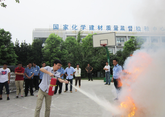 随后,员工们开展了现场模拟灭火演练。公司消防管理人员向参演人员教授了灭火器的使用方法、注意事项,用一句话概括就是:拔销子、握管头、提瓶子、上风向、灭火根。参演员工们认真学习,仔细观察操作要领,然后逐个对着熊熊点燃的大火进行实际操作演练。大家以练为战,能迅速准确地灭掉火源,基本掌握了灭火器使用方法。