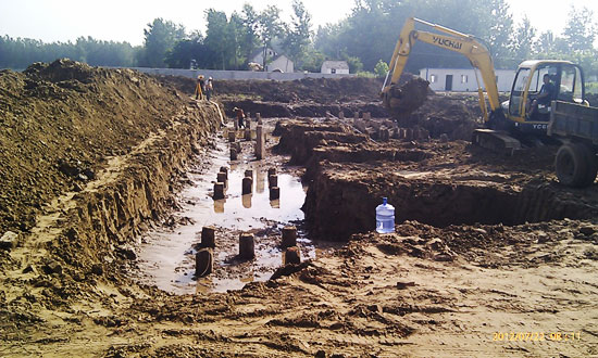 2012年7月22日,开工第11天,宿舍综合楼基础正在开挖。尽管地基遇到了局部流沙,但华财工程部与江苏省勘察院、盐城市规划设计院共同现场分析,圆满地解决了软弱地基处理的施工问题,为建筑物打下了扎实、安全的基础。