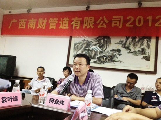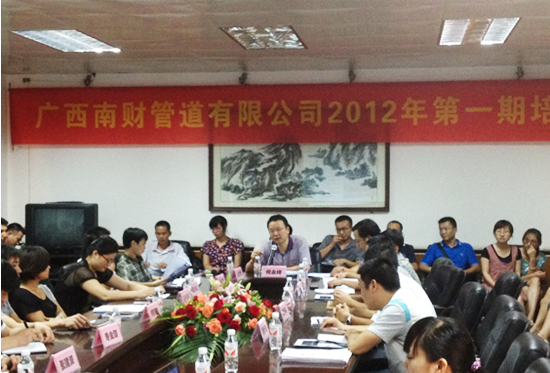 乐鱼网页版登录入口讯 2012年8月11日-24日,南财公司首次新员工培训在平果工业园管委会会议室举行。公司总经理何永祥先生、总经理助理程天安先生、各部门负责人、各市场管理处CEO、区域经理、驻厂驻地内勤等50余人参加培训。开课仪式由总经理何永祥先生主持。