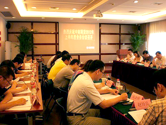7日上午9点,与会人员一起学习了“浙中董局字[Ⅳ]第194 号关于下发《关于设立河南河财管道有限公司等问题的原则意见》的通知”等文件。公司首席风险官王永福同志宣读了中期协的相关文件,要求大家珍惜自己的职业生涯,做合格的期货从业人员。公司总经理杨伟同志对公司上半年度经营情况进行总结。各营业部和市场部负责人针对2012年上半年度的工作进行总结和自我反省。