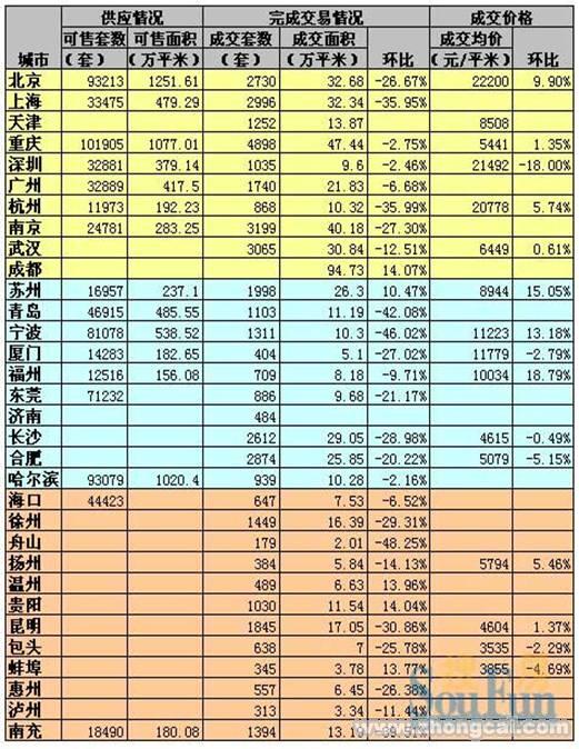 1.北京、上海、深圳、天津、长沙、东莞、南京、济南、青岛、苏州、厦门、福州、贵阳、包头、温州、泸州数据为商品住宅交易数据,其他城市为商品房交易数据(长沙、泸州为住宅期房数据)。