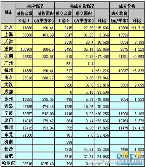 1.北京、上海、深圳、天津、长沙、东莞、南京、济南、青岛、苏州、厦门、福州、贵阳、包头、温州、泸州数据为商品住宅交易数据,其他城市为商品房交易数据(长沙、泸州为住宅期房数据)。