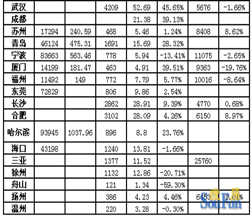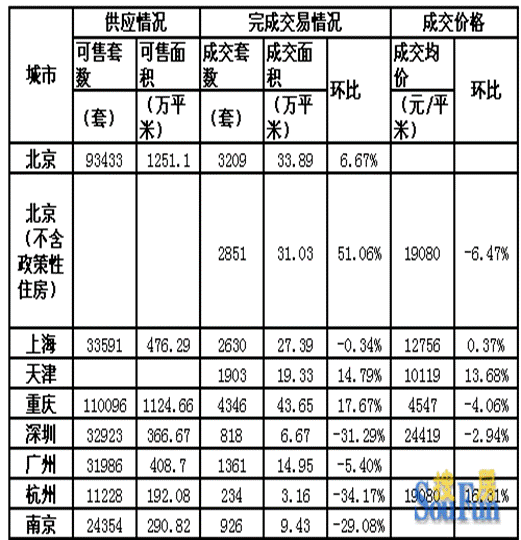 1 、北京、上海、深圳、天津、长沙、东莞、南京、济南、青岛、苏州、厦门、福州、贵阳、包头、温州、泸州数据为商品住宅交易数据,其他城市为商品房交易数据(长沙、泸州为住宅期房数据)。