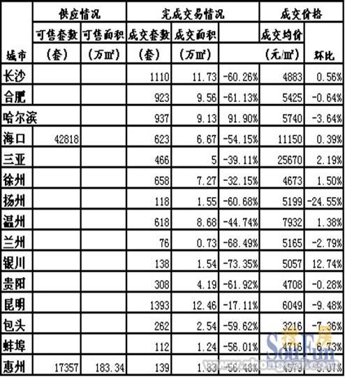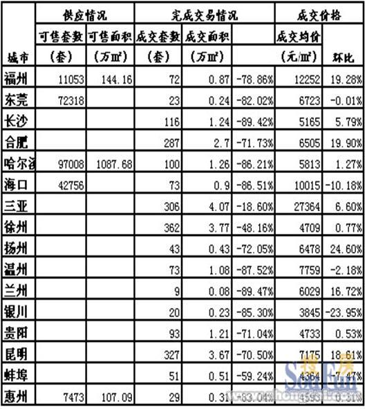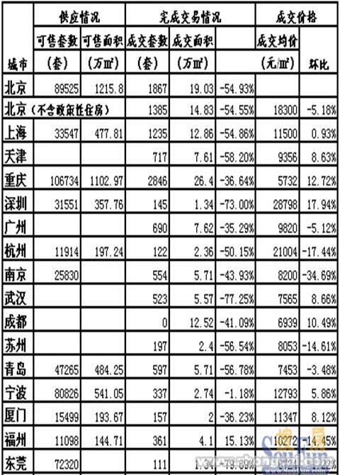 1.北京、上海、深圳、天津、长沙、东莞、南京、青岛、苏州、厦门、福州、贵阳、包头、温州数据为商品住宅交易数据,其他城市为商品房交易数据(长沙为住宅期房数据)。