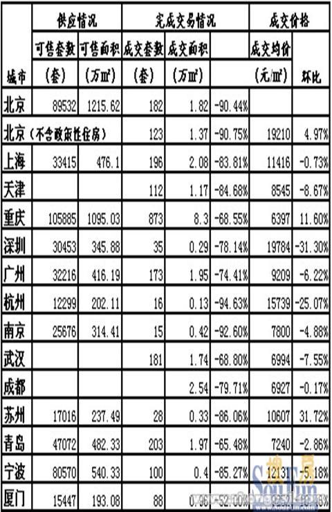 中国主要城市商品住宅交易数据周报(2010.2.8-2.21)