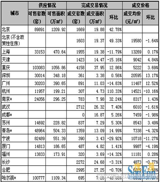 1.北京、上海、深圳、天津、长沙、东莞、南京、青岛、苏州、厦门、福州、贵阳、包头、温州数据为商品住宅交易数据,其他城市为商品房交易数据(长沙为住宅期房数据)。