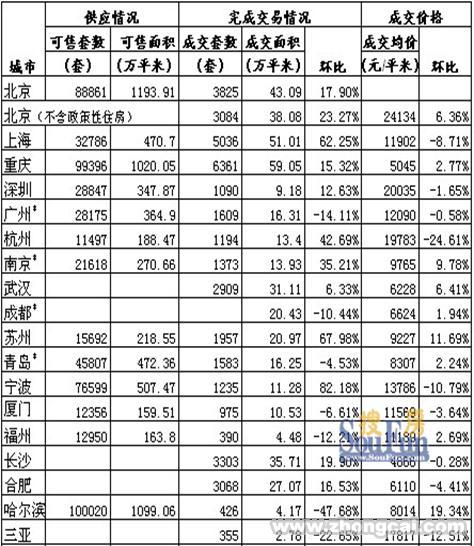 1.北京、上海、深圳、天津、长沙、东莞、南京、青岛、苏州、厦门、福州、贵阳、包头、温州数据为商品住宅交易数据,其他城市为商品房交易数据(长沙为住宅期房数据)。