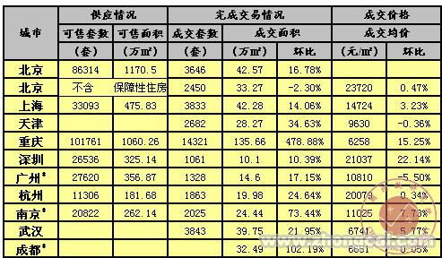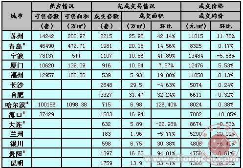 1.北京、上海、深圳、天津、长沙、东莞、南京、青岛、苏州、厦门、福州、贵阳、包头、温州数据为商品住宅交易数据,其他城市为商品房交易数据(长沙为住宅期房数据)。