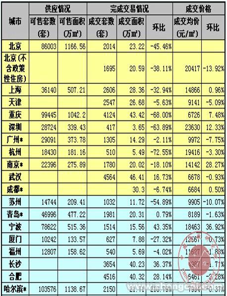 1.北京、上海、深圳、天津、长沙、东莞、南京、青岛、苏州、厦门、福州、贵阳、包头、温州数据为商品住宅交易数据,其他城市为商品房交易数据(长沙为住宅期房数据)。