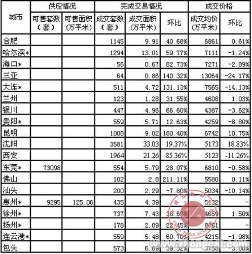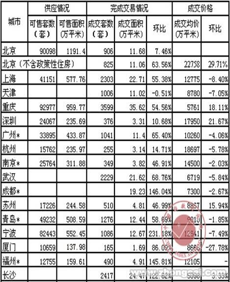 1.北京、上海、广州、深圳、天津、长沙、东莞、南京、青岛、苏州、厦门、福州、大连、沈阳、西安、三亚、贵阳、包头、温州数据为商品住宅交易数据,其他城市为商品房交易数据。