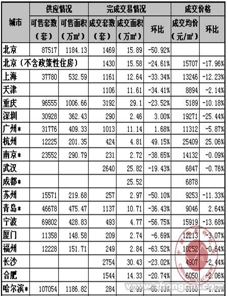 1.北京、上海、深圳、天津、长沙、东莞、南京、青岛、苏州、厦门、福州、贵阳、包头、温州数据为商品住宅交易数据,其他城市为商品房交易数据(长沙为住宅期房数据)。