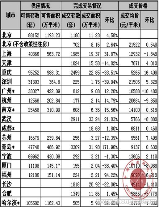 1.北京、上海、深圳、天津、长沙、东莞、南京、青岛、苏州、厦门、福州、贵阳、包头、温州数据为商品住宅交易数据,其他城市为商品房交易数据(长沙为住宅期房数据)。