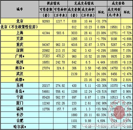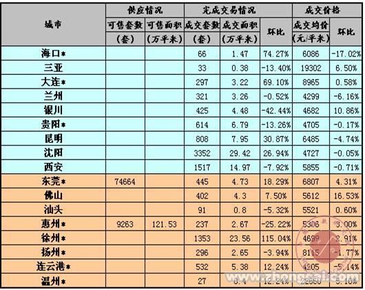 1.北京、上海、广州、深圳、天津、长沙、东莞、南京、青岛、苏州、厦门、福州、大连、沈阳、西安、三亚、贵阳、惠州、温州数据为商品住宅交易数据,其他城市为商品房交易数据。
