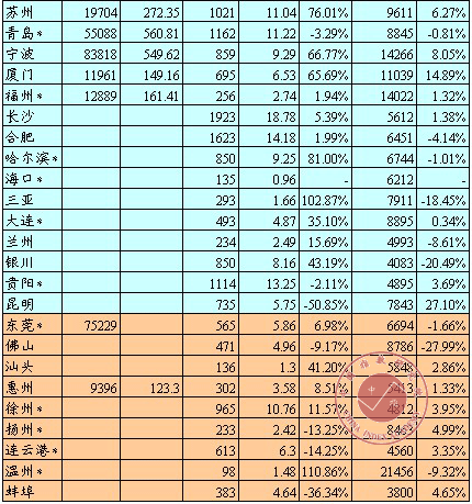 1.北京、上海、广州、深圳、天津、成都、长沙、东莞、南京、青岛、苏州、厦门、福州、大连、沈阳、惠州、三亚、贵阳、温州数据为商品住宅交易数据,其他城市为商品房交易数据。
