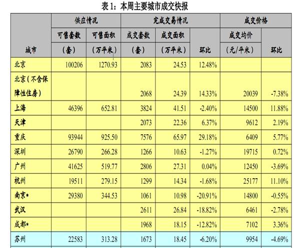 中国主要城市房地产每周交易数据情报(2010.9.20-9.26)
