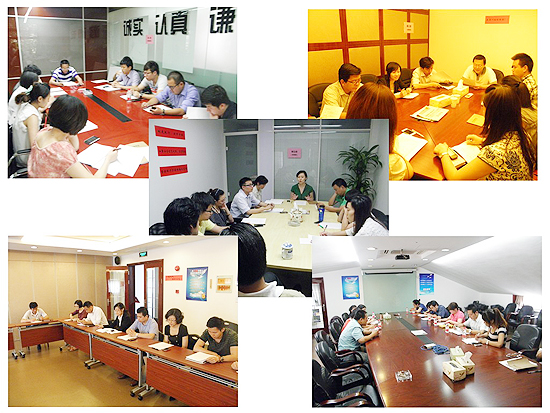 下午13:00,会议继续进行,前台各科室及业务人员分别对目前的业务信息情况、下一步的工作方向进行了汇报与交流。