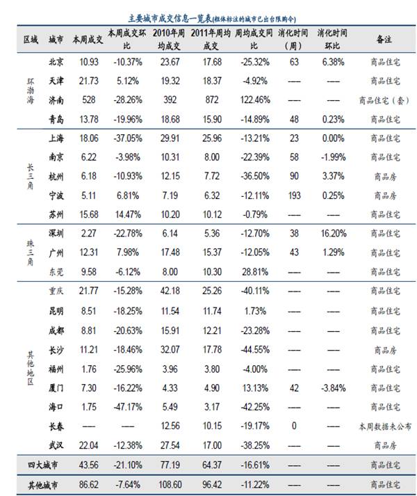 重点城市房地产成交(2011.9.12-9.18)