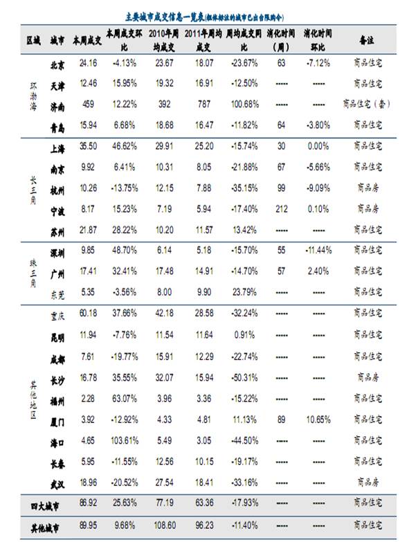 重点城市房地产成交(2011.12.26-2012.1.01)