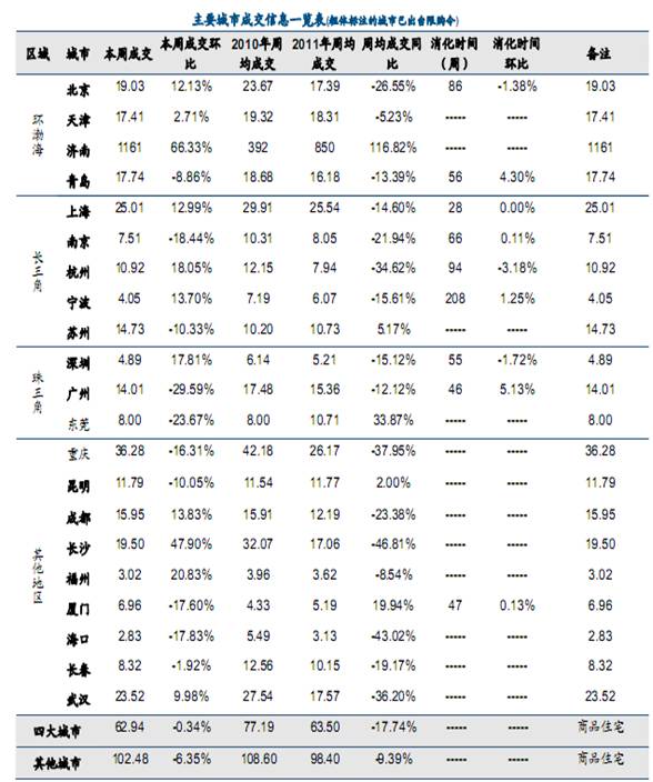 重点城市房地产成交(2011.10.24-10.30)