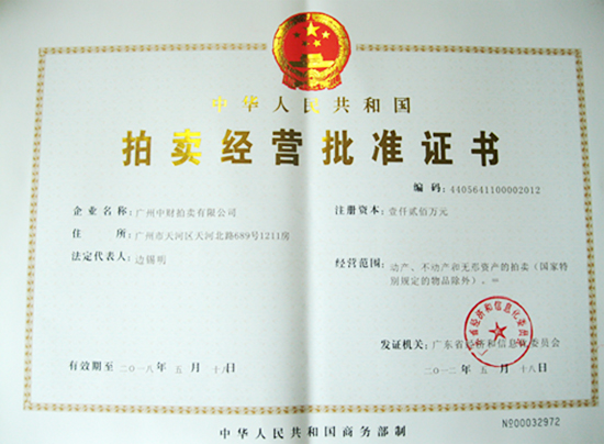 喜讯:乐鱼网页版登录入口金融广角(广州)获《拍卖经营批准证书》