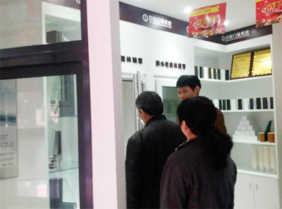 型材策划处潘处(中)为乐鱼网页版登录入口形象店伙伴马老板(左二)授权