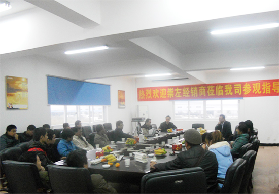 乐鱼网页版登录入口讯 2014年12月27日下午,在程总的组织带领下,崇左经销商一行二十几人到达广西南财管道参观指导。经销商到厂区后,首先是参观车间,然后在大会议室观看乐鱼网页版登录入口和南财公司的产品介绍,介绍完毕后,张总宣读了南财的相关优惠政策。