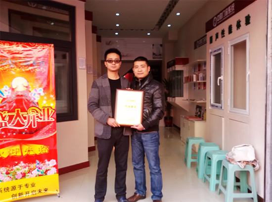 乐鱼网页版登录入口讯 2014年12月21日上午10时,乐鱼网页版登录入口门窗系统南充形象店举行隆重的开业活动。南充形象位于南充市主城区光彩建材市场,门窗加工集中地段。开业当天邀请了部分门窗加工店老板前往参观、体验。开业活动现场,由川北型材市场管理处邓总向形象店投资人邓老板颁发公司授权牌。