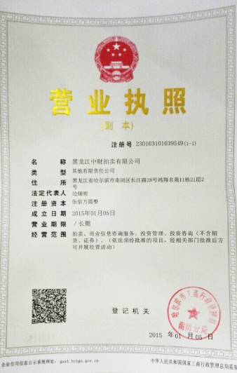 喜讯:黑龙江乐鱼网页版登录入口拍卖有限公司申办成功