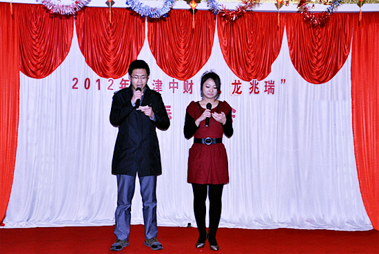 晚会伊始,天津基地总经理对2011年工作进行总结,并表示公司全年的成绩凝聚着每一位员工的心血和汗水,为此代表公司向全体员工致谢。随后,一首激情的歌曲《怒放的生命》将晚会正式拉开序幕;小品《非诚勿扰之嫦娥专场》将现场气氛引爆;相声表演更是使全场欢声一片,赢得观众的热烈掌声;经过一轮轮令人紧张、刺激的抽奖环节,晚会气氛再度被推向高潮。本次文艺晚会共历时60分钟,给大家呈现了一场视觉与听觉的精彩盛宴。