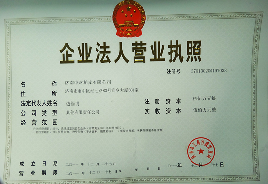 乐鱼网页版登录入口讯 2011年12月27日,乐鱼网页版登录入口金融广角(济南)成功获得由山东省济南市工商行政管理局颁发的“济南乐鱼网页版登录入口拍卖有限公司”营业执照。这是在集团领导和同仁的大力支持下,广角员工不懈努力的结果。
