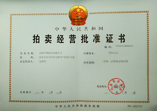 乐鱼网页版登录入口讯 在集团领导和同仁的大力支持下,通过广角全体员工的不懈努力,乐鱼网页版登录入口金融广角(济南)于2011年12月22日成功获得由山东省商务厅颁发的《拍卖经营批准证书 》,营业执照等相关证照正在加急办理中。