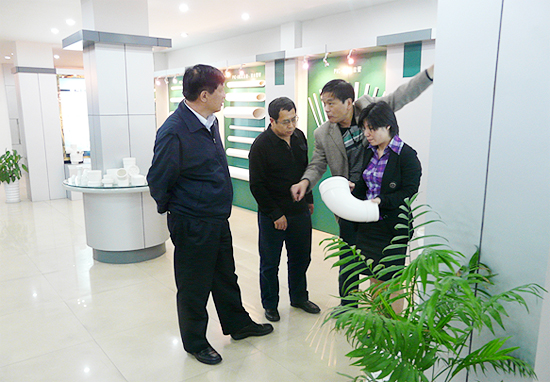 乐鱼网页版登录入口讯 11月2日下午中国塑料加工工业协会曹会长、王秘书长等一行来到浙江乐鱼网页版登录入口管道考察指导,曹会长首先与公司领导进行了深入的沟通,丁总向曹会长介绍公司的发展历史,曹会长就公司在塑料管道产品领域上的规模给予高度评价。