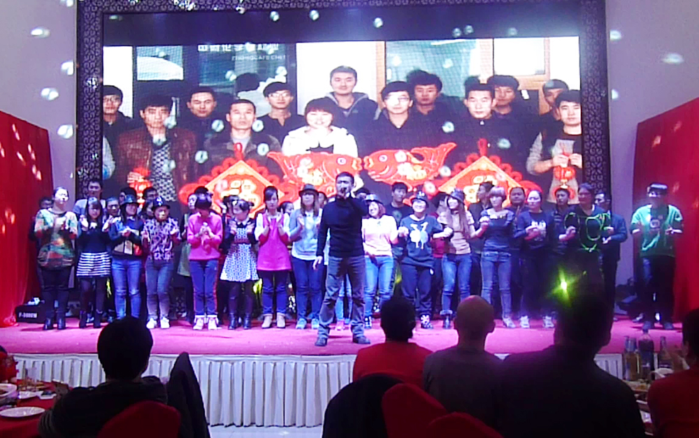 欢庆的锣鼓敲起来,快乐的舞蹈跳起来,《欢乐中国年》的开场舞拉开了晚会的序幕。晚会伊始,何总及刘总为优秀员工颁发了奖金及奖状,并带来了热情洋溢的新年致辞,期待全体员工齐心协力在2015年各项工作中再创佳绩。演出节目精彩纷呈,形式多样,有歌曲演唱,有诗歌朗诵,有舞蹈,有二人转,有惹人大笑的小品表演等。其中关东总部(管道)代表常远同志的一首《火》,更是道出了希望销量红红火火的新年愿望。